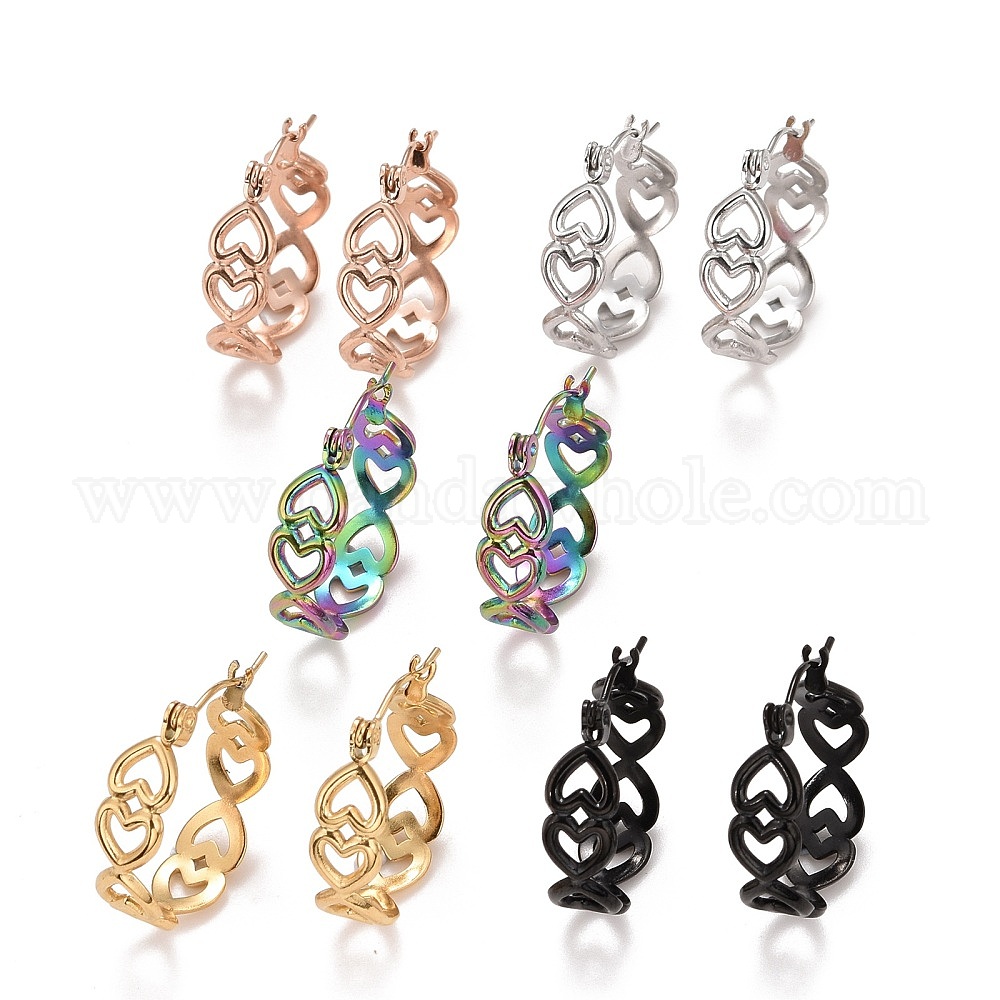 Полое сердце 304 серьги-кольца из нержавеющей стали для женщин