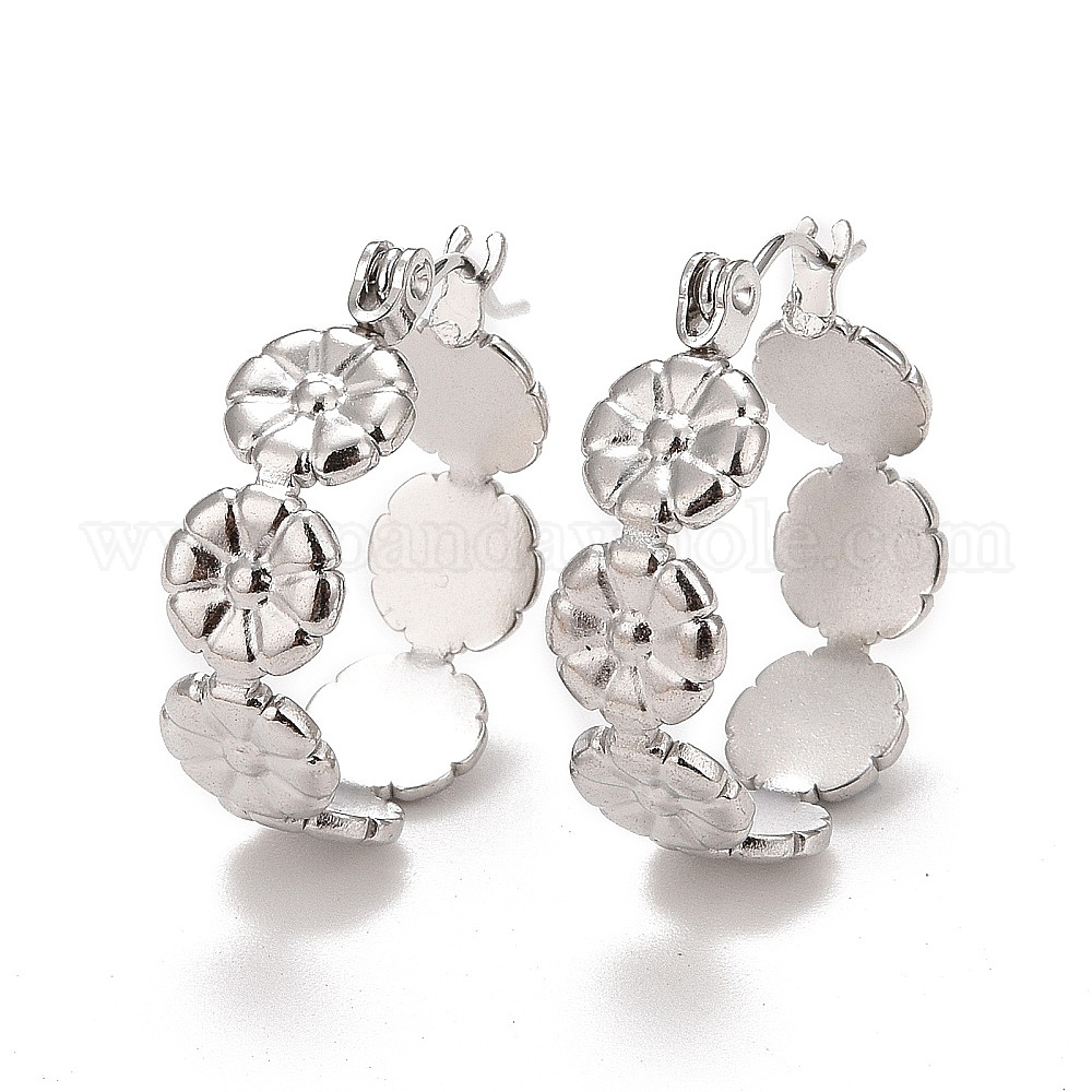 Цветок 304 Серьги-кольца из нержавеющей стали для женщин с ионным покрытием (IP)