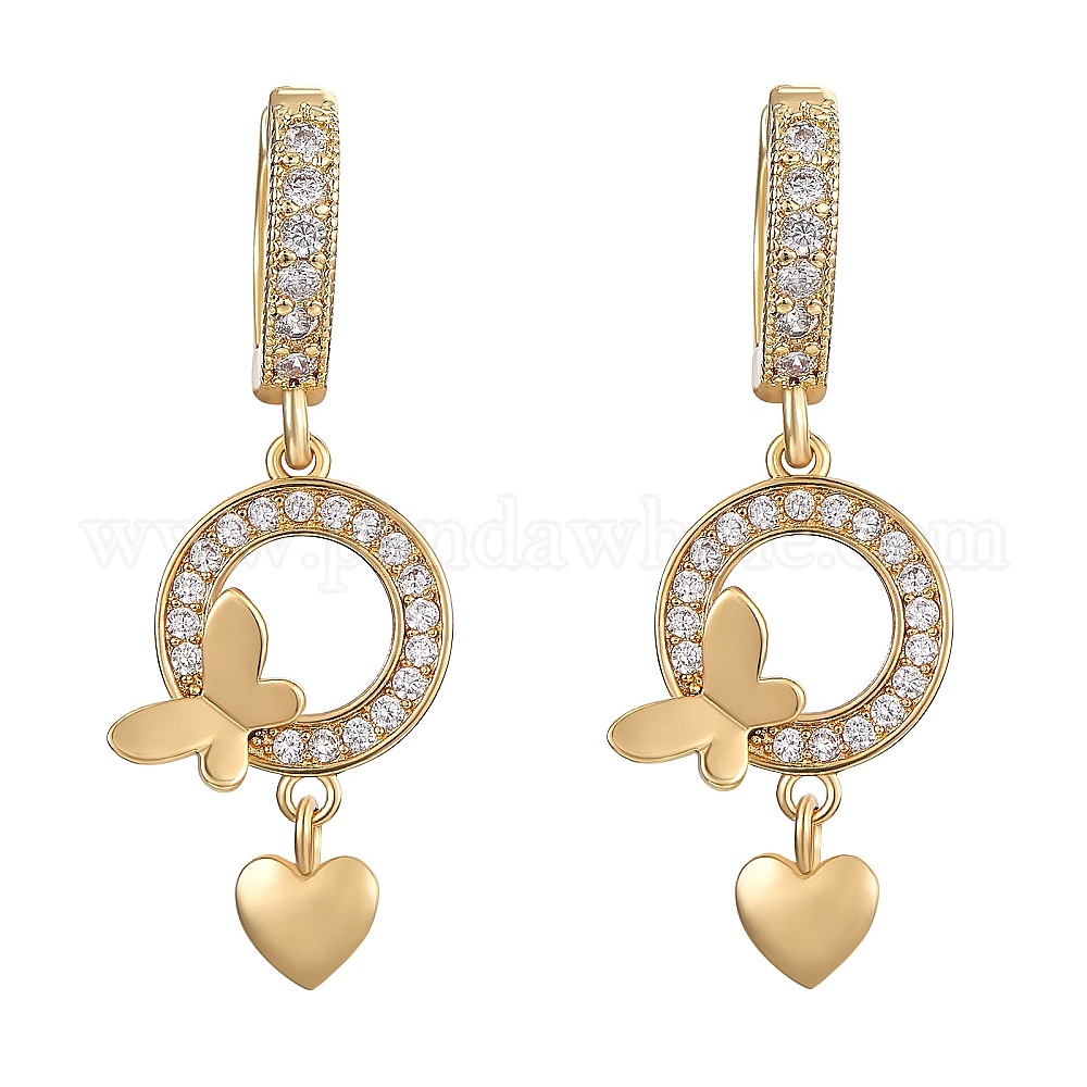 • Золотой Кольцо из прозрачного кубического циркония с бабочкой и серьгой-кольцом в виде сердца, украшения из латуни для женщин, золотые, 35 мм, штифты : 0.9 мм