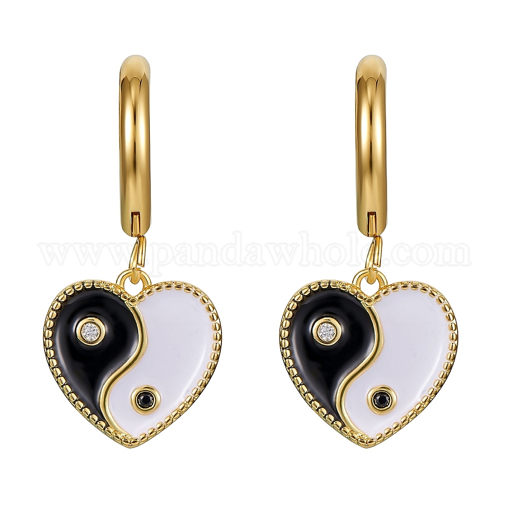 Серьги-кольца с подвесками в форме сердца из прозрачного циркония с эмалью инь-янь, серьги-подвески из латуни с 316 булавкой из хирургической нержавеющей стали для женщин