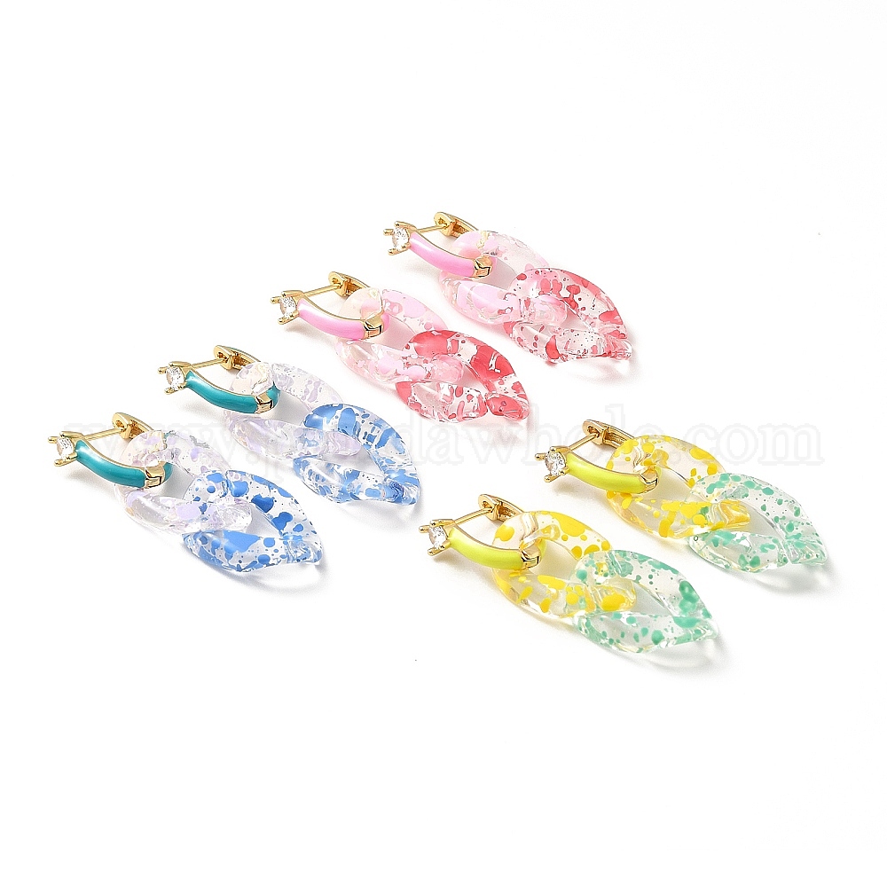 • (52) Непрозрачная лаванда Серьги-кольца с подвесками из полимерной цепочки, серьги из настоящей позолоченной латуни с кубическим цирконием, без свинца, без кадмии и без никеля, разноцветные, 18 мм, штифты : 45.5 мм