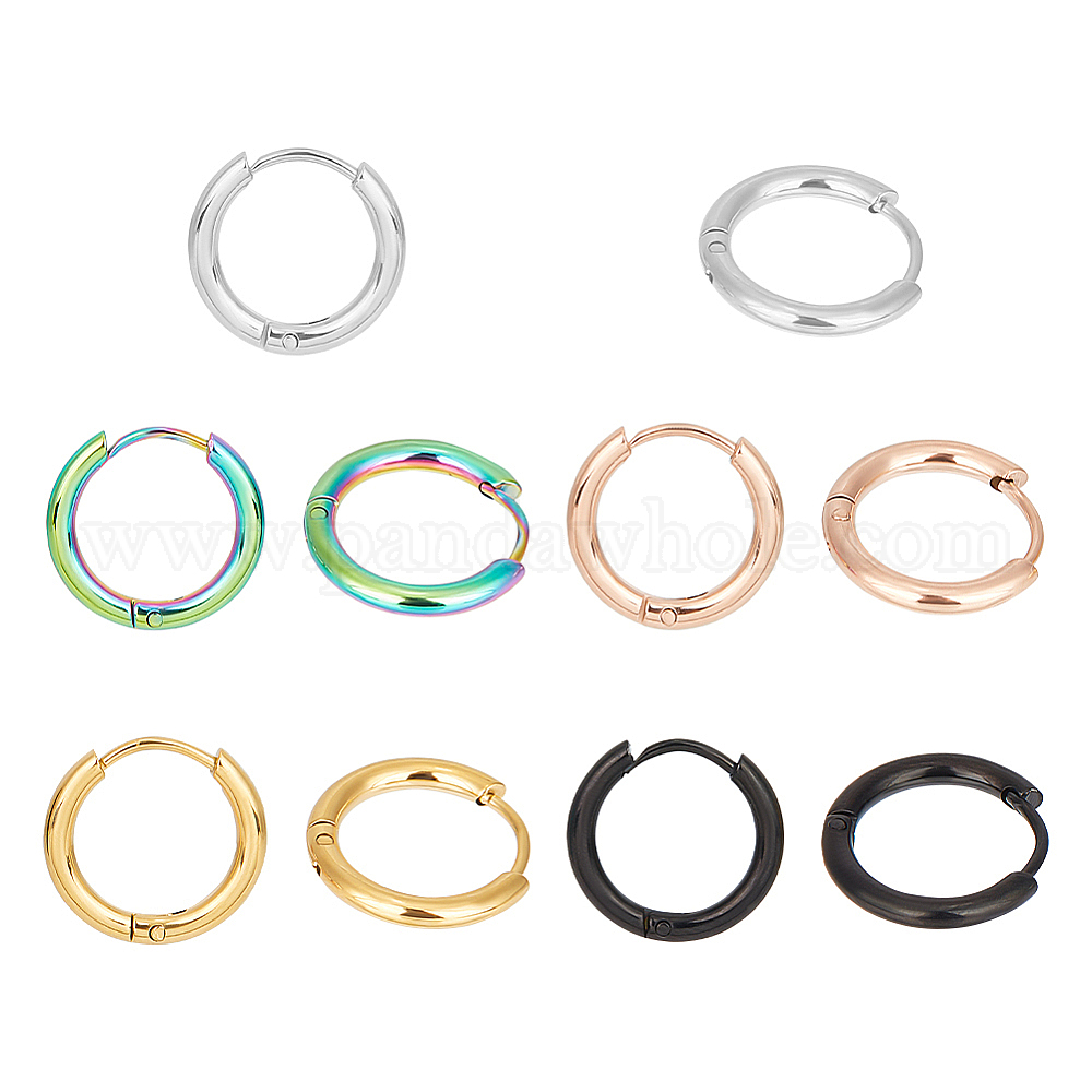 304 серьги-кольца из нержавеющей стали: около 12 калибра, 14x2 мм, штифт: 0.8 мм (± 0.1 мм), внутренний диаметр: 10 мм, 5 цветов, 1 пара / цвет, 5 пары;