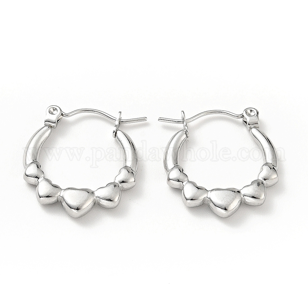 • Нержавеющая Сталь Цвет Не тускнеющие 304 серьги-кольца в форме сердца из нержавеющей стали для женщин, цвет нержавеющей стали, 20x18x3 мм, штифты : 0.8 мм