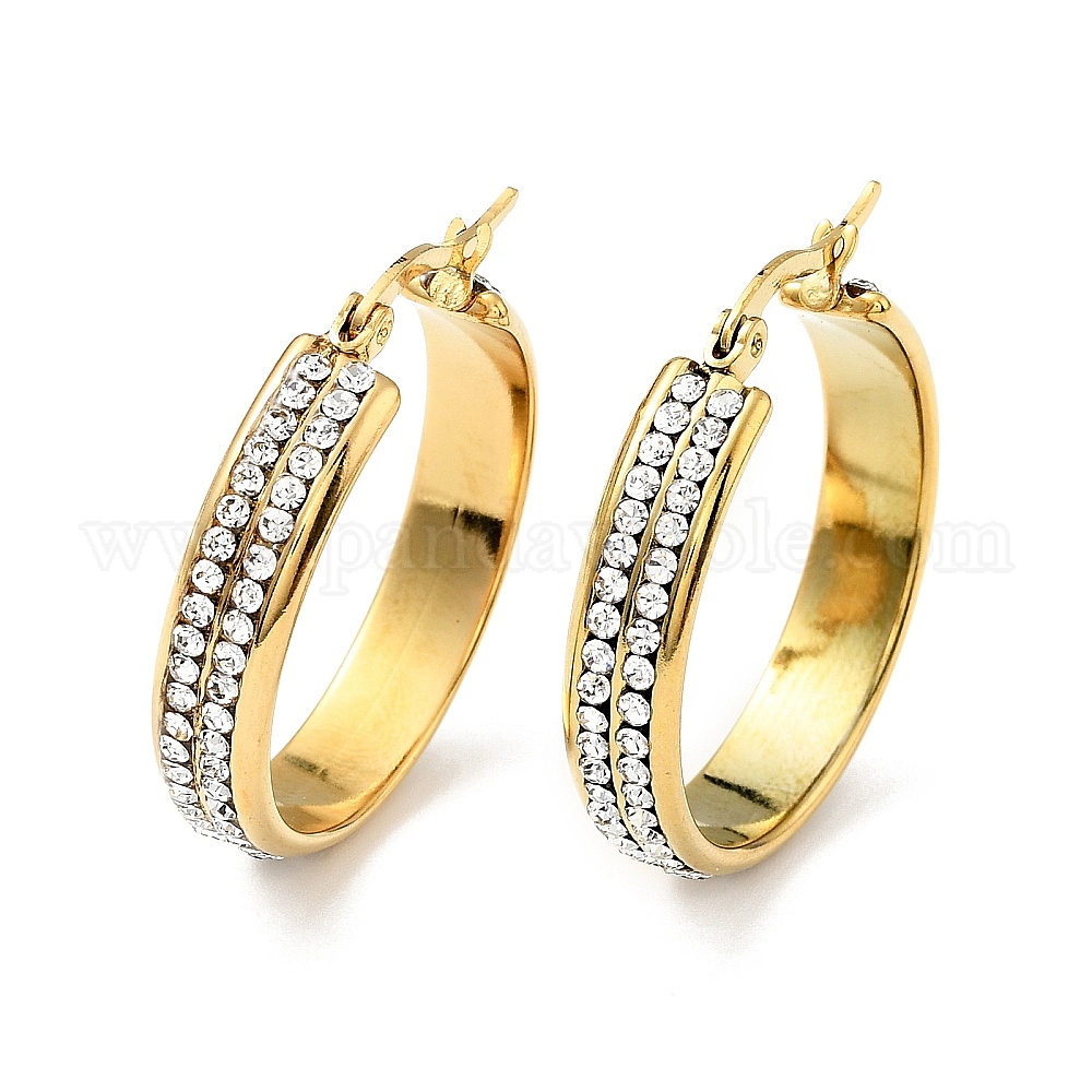 • Золотой Серьги-кольца с кристаллами и стразами, вакуумное покрытие pvd 201 серьги из нержавеющей стали с 304 штифтами из нержавеющей стали для женщин, золотые, 29x6 мм, штифты : 0.6 мм