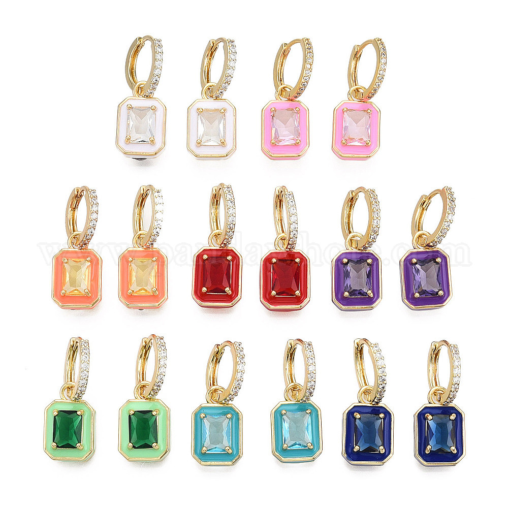 Прямоугольные серьги-кольца с кубическим цирконием и эмалью, настоящие позолоченные латунные серьги 18k для женщин, без никеля