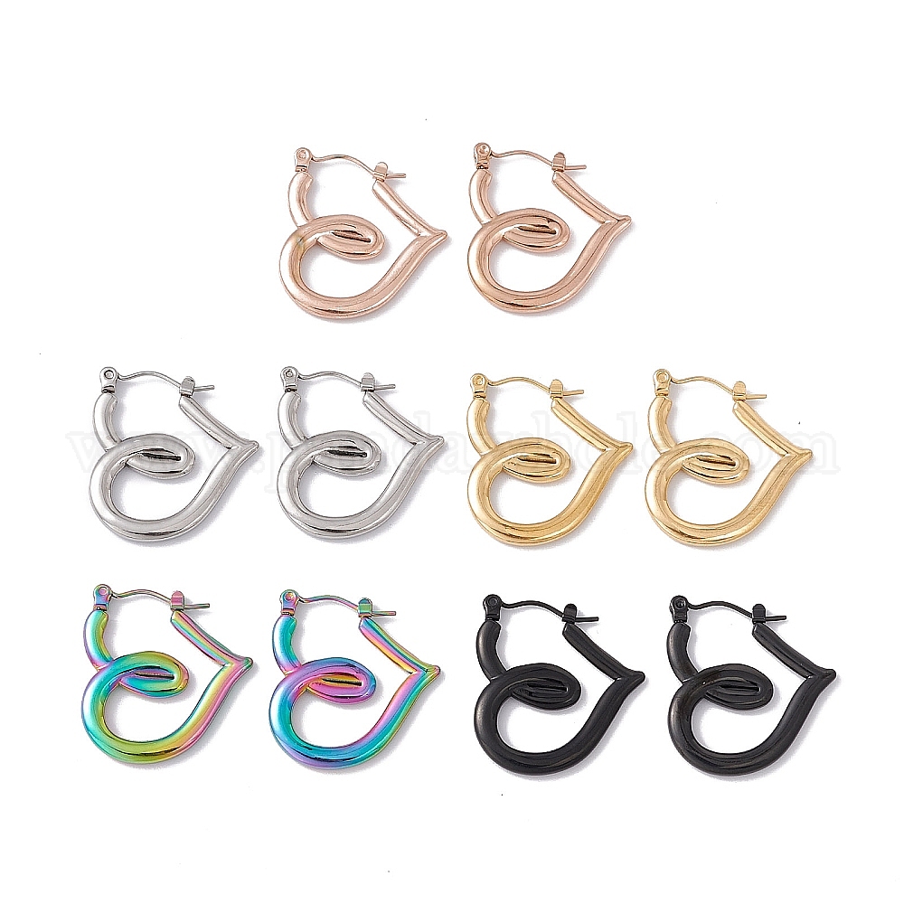 304 Серьги-кольца в форме сердца из нержавеющей стали для женщин, ионное покрытие (IP)