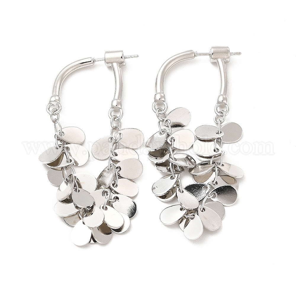 • Платина Латунные серьги-кольца с каплевидными подвесками, длинные серьги-подвески для женщин, платина, 52x27x5 мм, штифты : 0.9 мм