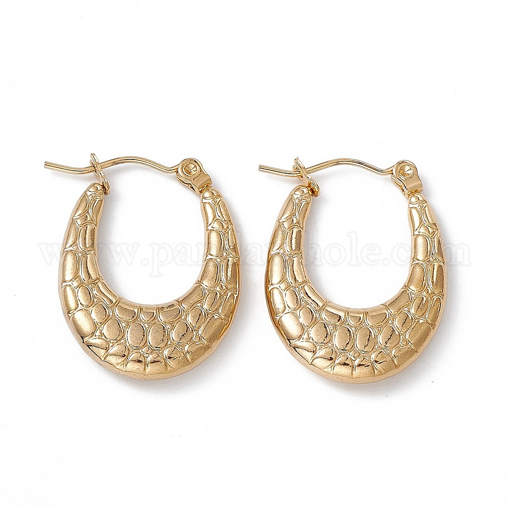 201 овальные толстые серьги-кольца с текстурой из нержавеющей стали с 304 булавками из нержавеющей стали для женщин