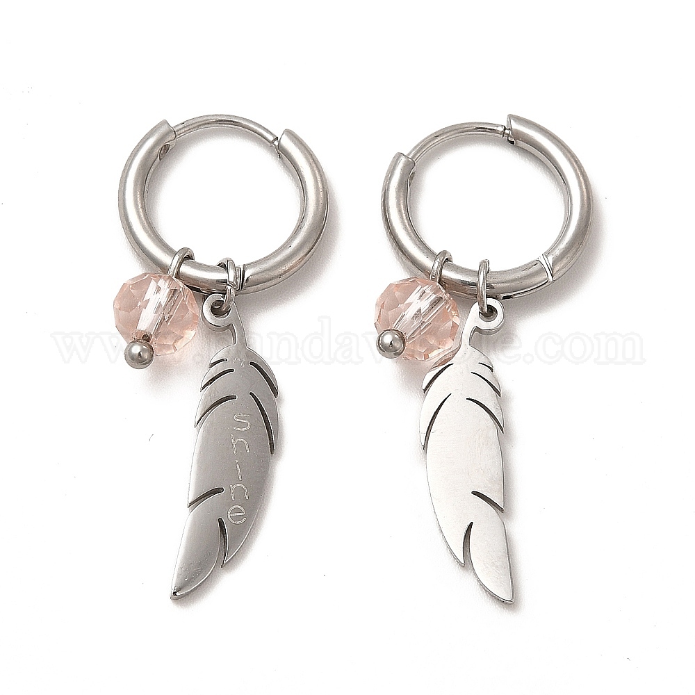 Стеклянные круглые серьги-кольца с бусинами и перьями, 304 женские украшения из нержавеющей стали