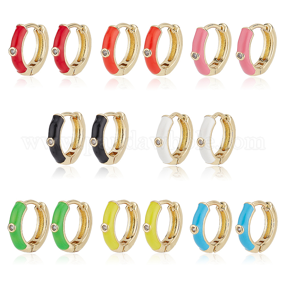 8 пары 8 цвета настоящие 18 серьги-кольца с эмалевым покрытием из золота 995 пробы и прозрачными кубическими цирконами, латунные украшения из светлого золота для женщин (02H7TJ)