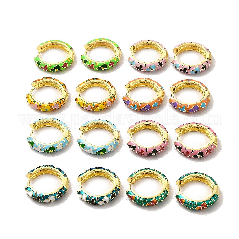Серьги-кольца с цветочной эмалью, настоящие позолоченные украшения из латуни для женщин, без свинца и без кадмия