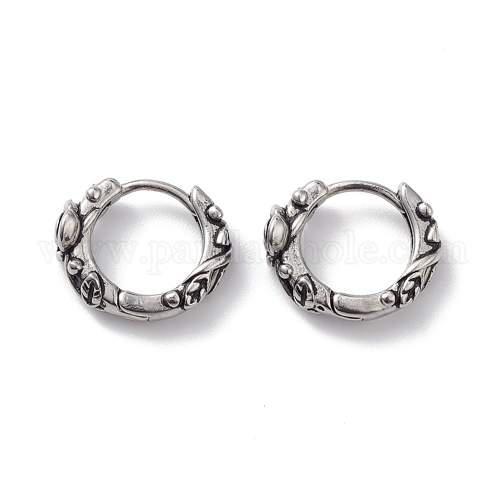 • Нержавеющая Сталь Цвет Не тускнеющие 304 серьги-кольца из нержавеющей стали с розами для женщин, цвет нержавеющей стали, 14x16.5x5.5 мм, штифты : 1 мм