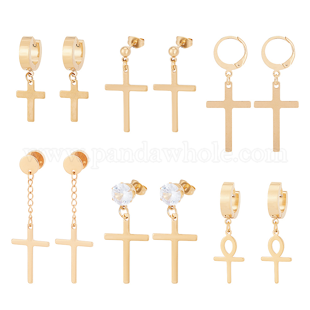 12шт. 6 стиль 304 серьги-кольца из нержавеющей стали с крестом, серьги-гвоздики и рычажные серьги для женщин и мужчин
