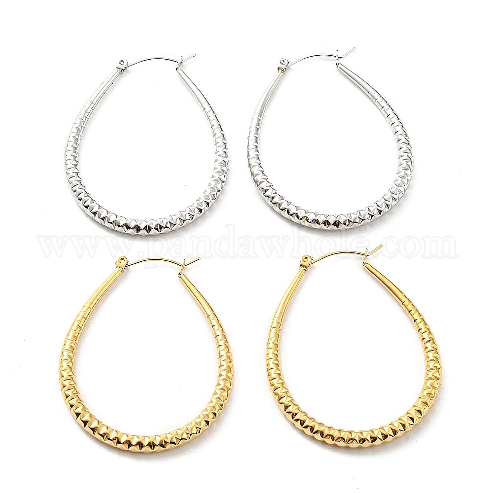 • Нержавеющая Сталь Цвет Не тускнеют 304 серьги-кольца из нержавеющей стали с текстурой в виде капли, цвет нержавеющей стали, 49.5x4 мм