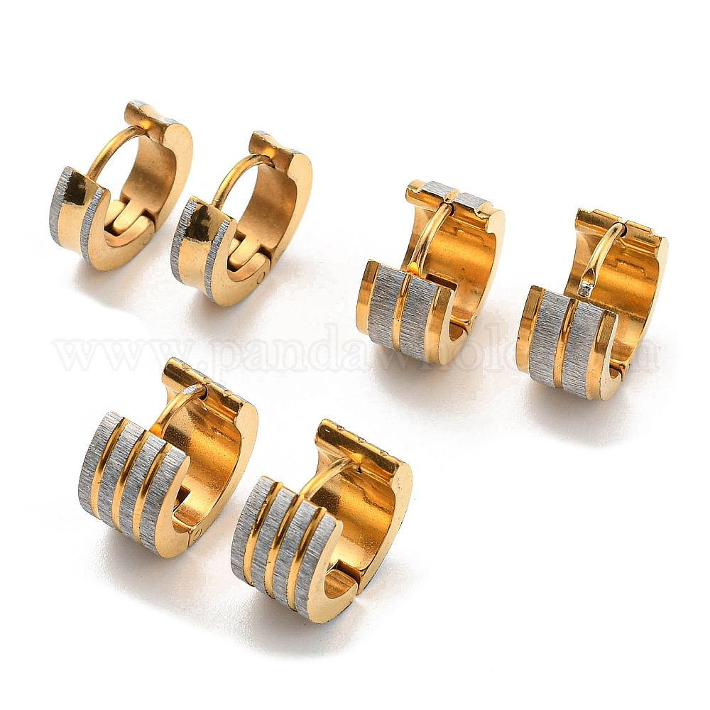 • Золотой 304 серьги-кольца из нержавеющей стали с текстурой, кольцо, золотые, 13x13.5x7 мм