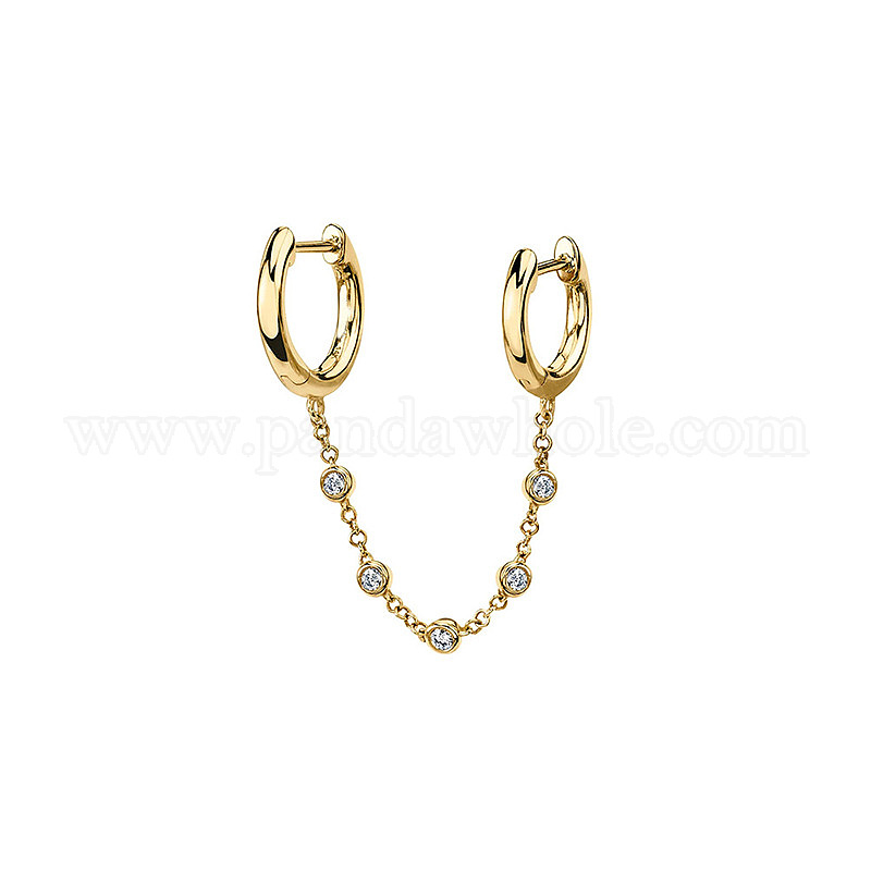 • Golden (single) Шикарные серьги-каффы с бриллиантовой цепочкой для модных девушек - s925 каффы и серьги-пусеты