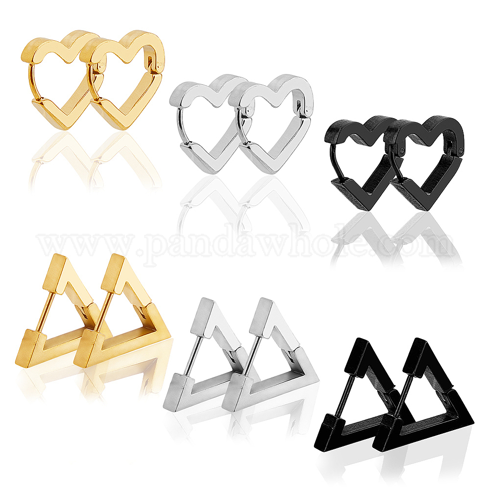 12шт 6 стильные серьги-кольца из нержавеющей стали для женщин, треугольник и сердце