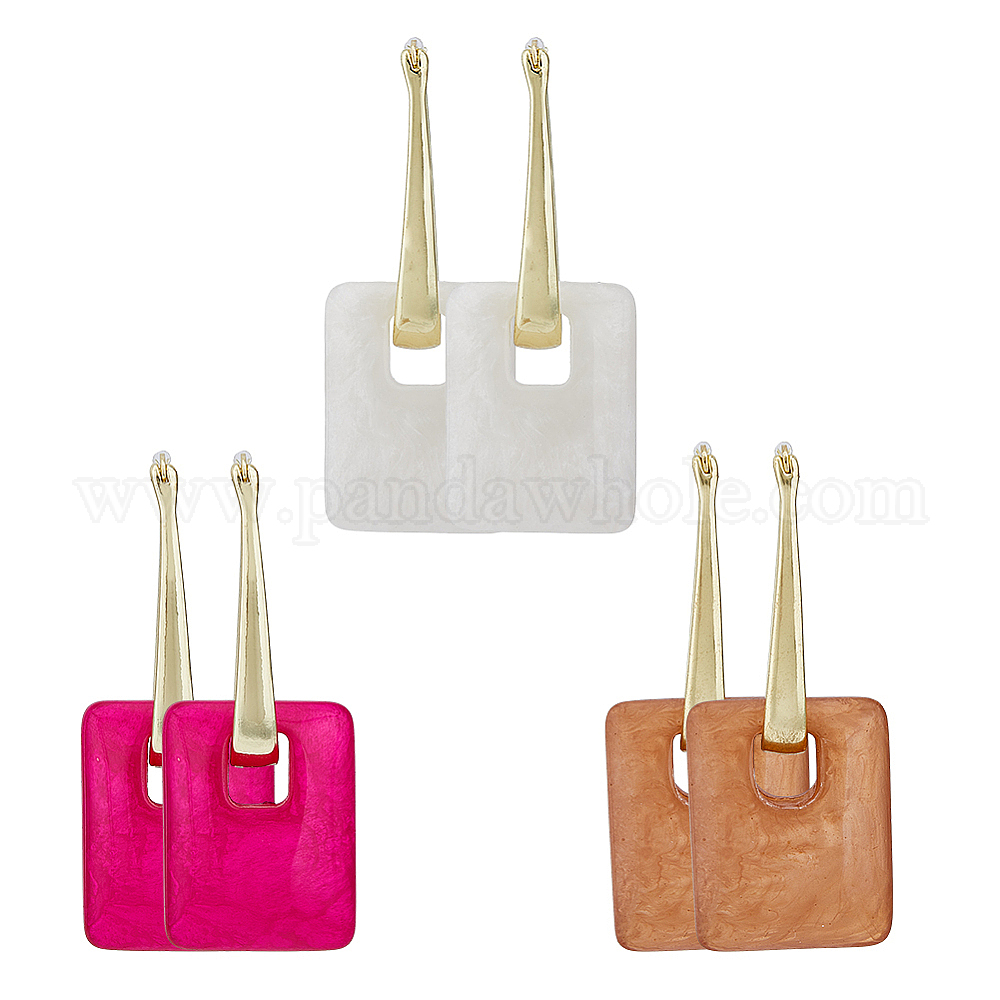 3 пары 3 цвета прямоугольные серьги-кольца из смолы для женщин, длинные серьги-капли из золотого сплава (02NRJF)