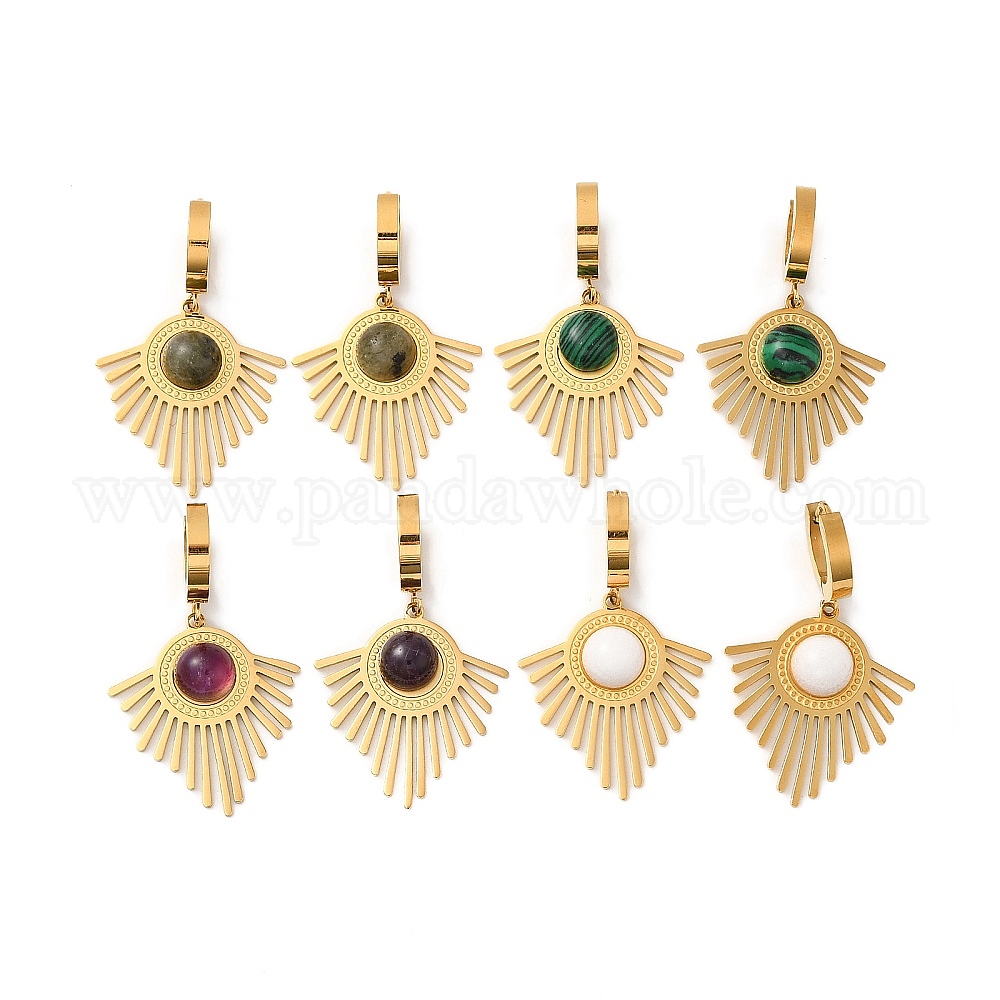 Вакуумное покрытие pvd 304 серьги-кольца из нержавеющей стали в форме веера, женские серьги-подвески из натуральных смешанных драгоценных камней