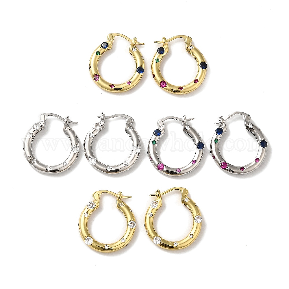 Серьги-кольца с кубическим цирконием, серьги из латуни для женщин, без свинца и без кадмия (02NZ8Q)