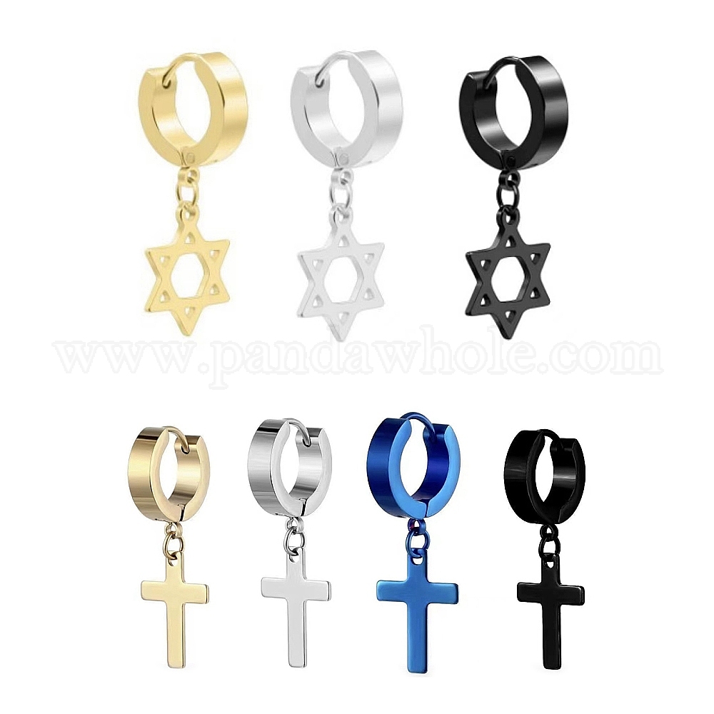 • Нержавеющая Сталь Цвет Не тускнеющие 201 серьги-кольца из нержавеющей стали, звезда Давида, цвет нержавеющей стали, 9x4 мм