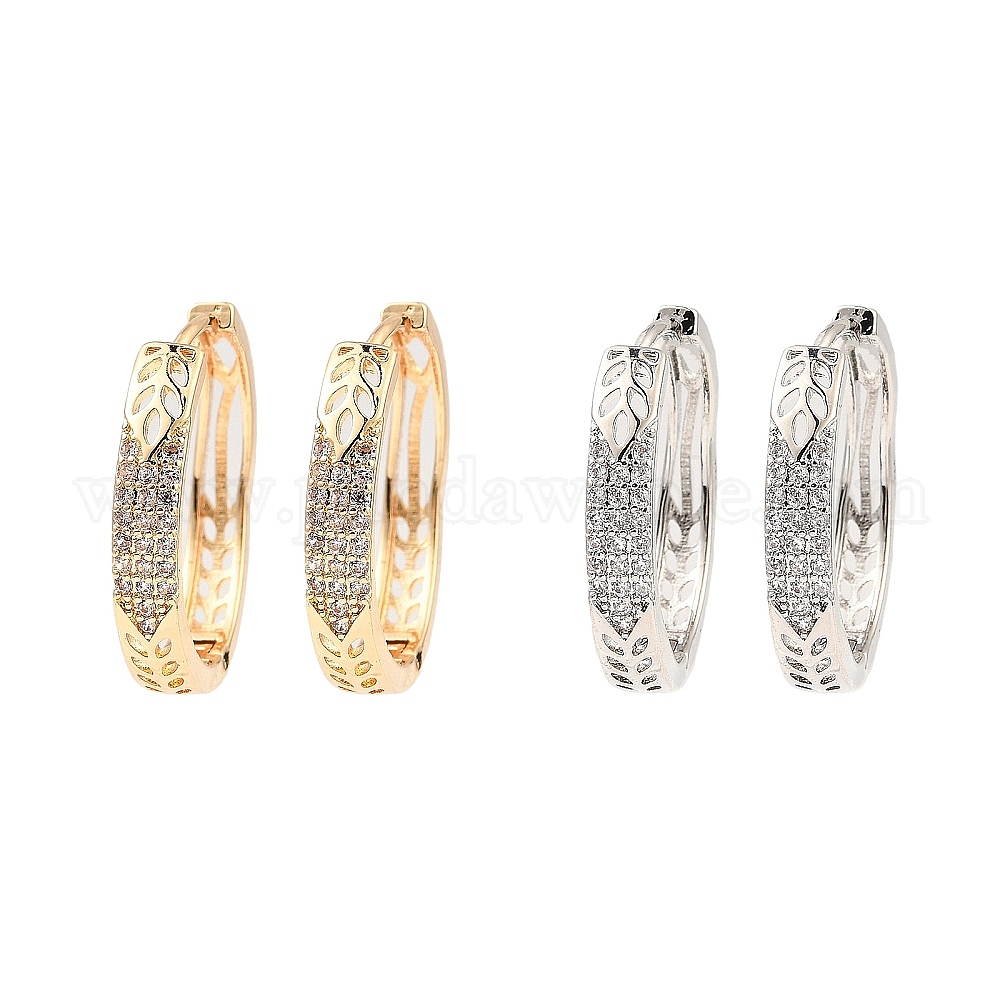 Серьги-кольца из латуни с микропаве из кубического циркония, полый лист