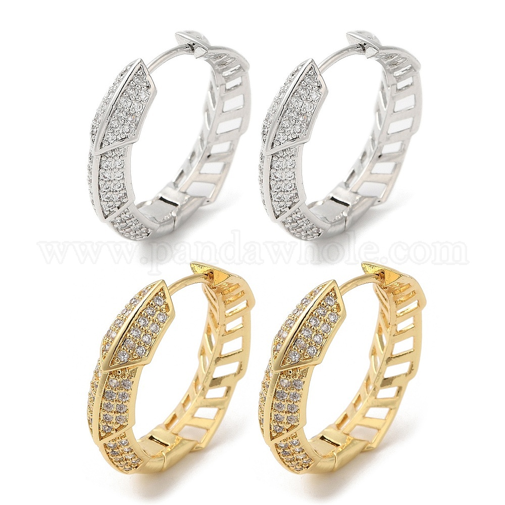 Серьги-кольца из латуни с микропаве и кубическим цирконием, покрытие стойки, без свинца и без кадмия