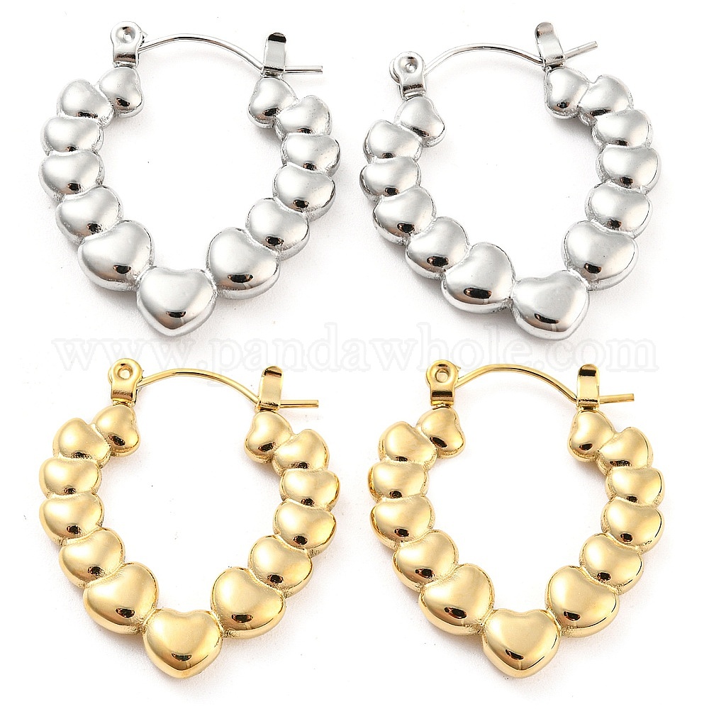 Женские серьги-кольца из нержавеющей стали с сердечками 304