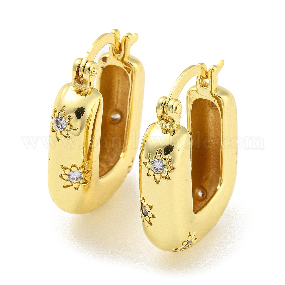 Серьги-кольца из латуни с микропаве из кубического циркония, долговечный, без кадмия и без свинца, прямоугольные (02Q47B)