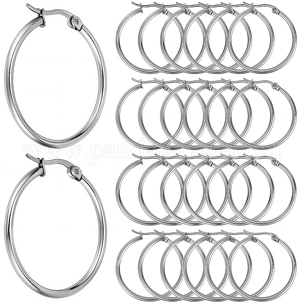 круглое кольцо 304 серьги-кольца из нержавеющей стали: около 29~31 мм в диаметре, Толщиной 2 мм (калибр 12); штифт: 0.7~1.3x0.68 мм, 30 пары;