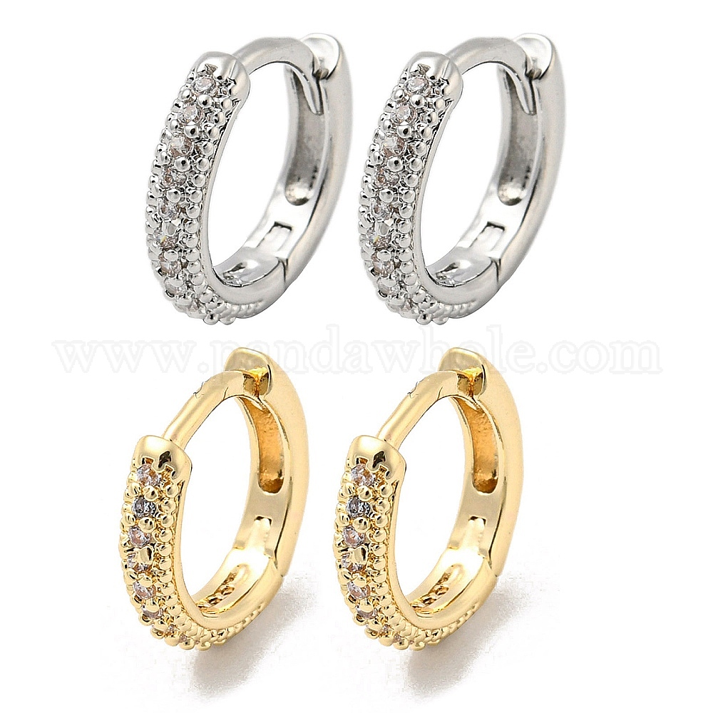 Женские серьги-кольца из латуни с микропаве и прозрачными циркониями