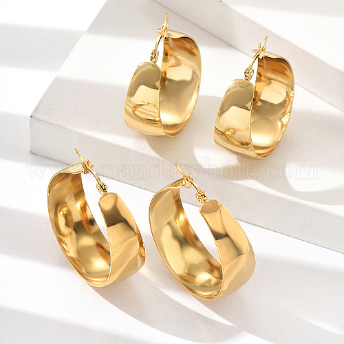 • Настоящее золото 18K 304 серьги из нержавеющей стали для женщин, круглые кольца, реальный 18 k позолоченный, 30x34 мм