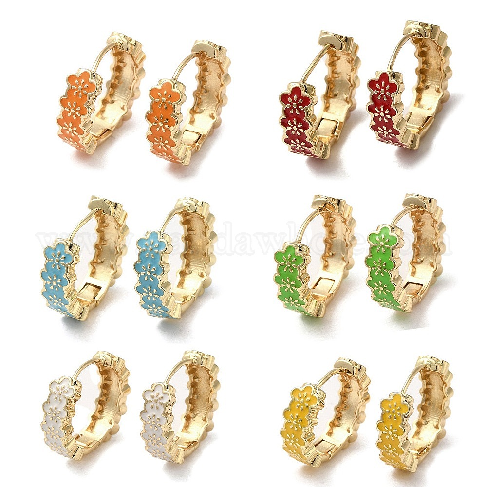 Серьги-кольца из латуни с настоящим цветком 18k, позолоченные, с эмалью