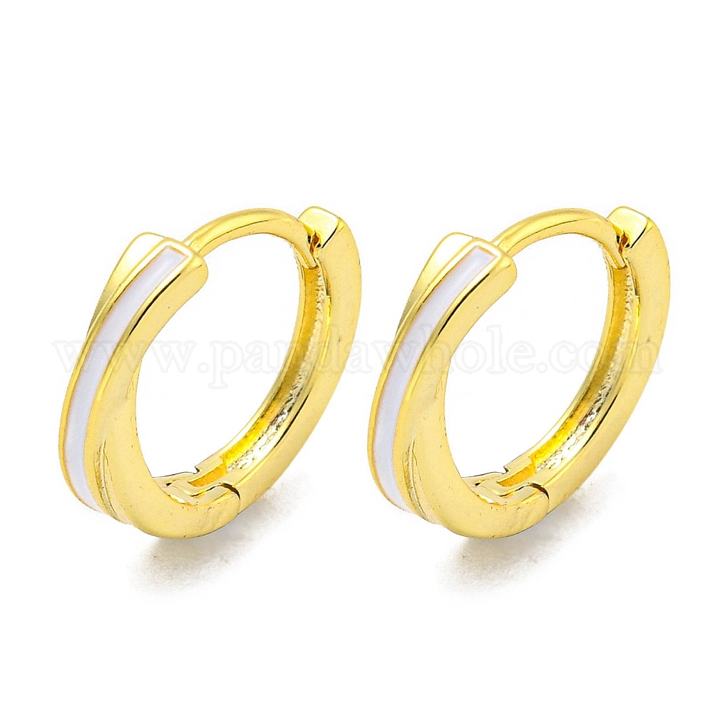 • Платинированный Латунные серьги обруча, с эмалью, Реальная платина, 12x3 мм