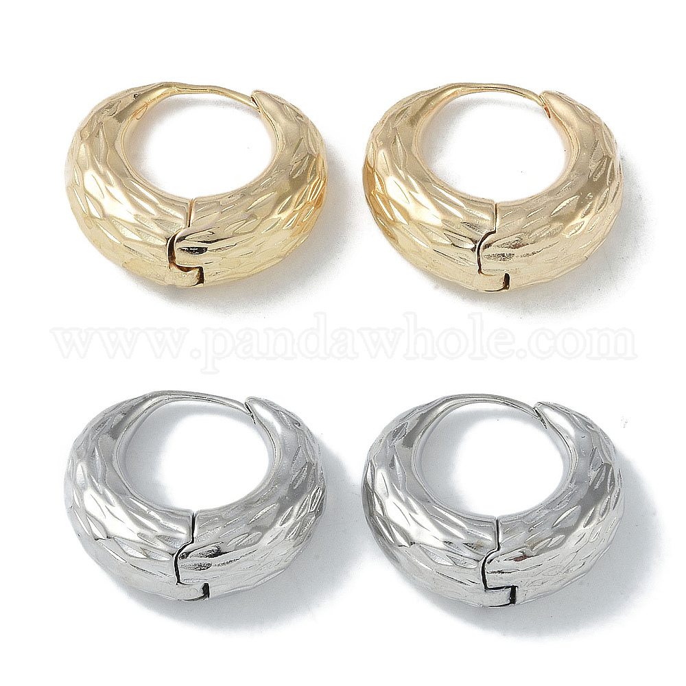 • Платинированный Латунные серьги-гвоздики для женщин с текстурным кольцом, Реальная платина, 22.5x10 мм
