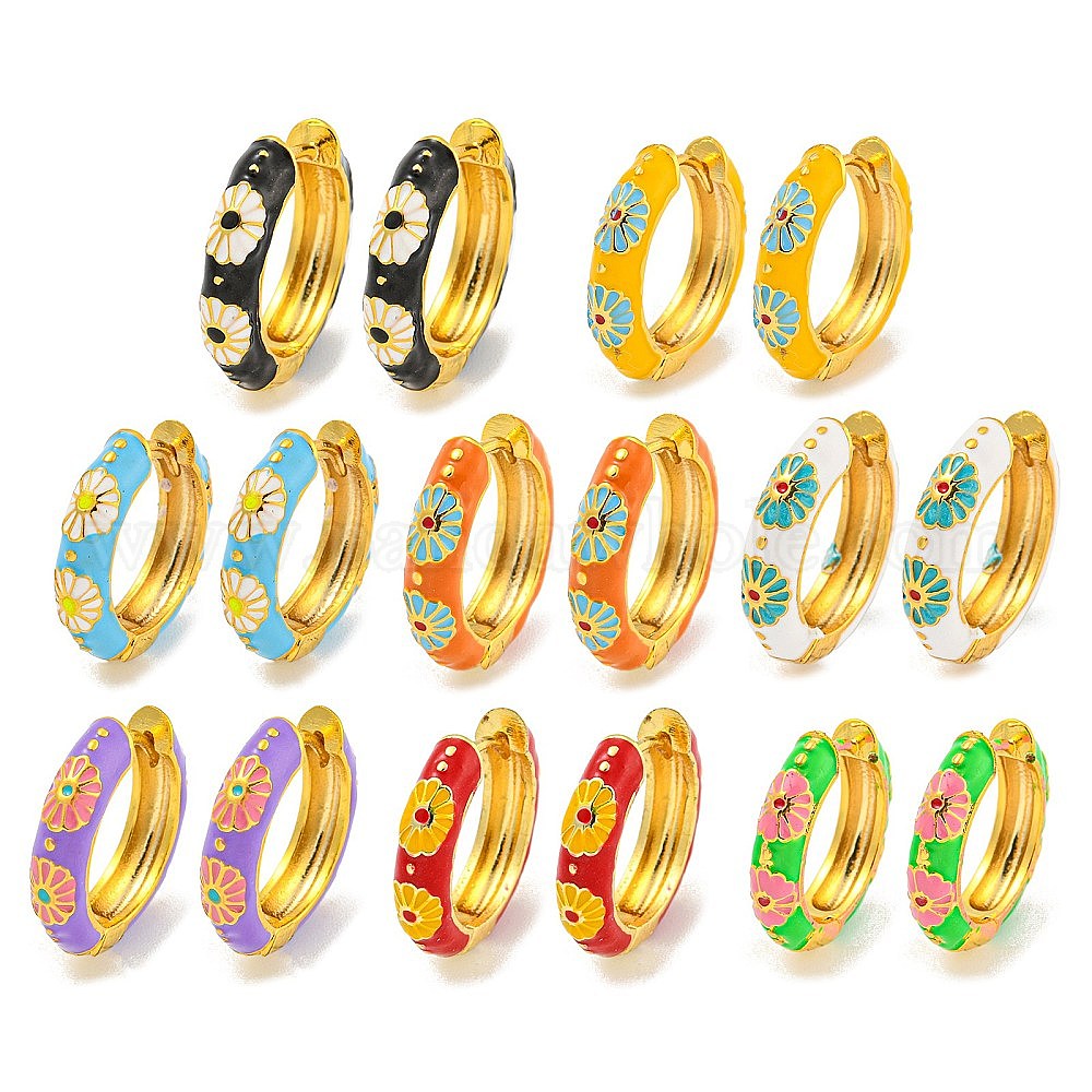 Латунные серьги обруча, с цветочной эмалью, без кадмия и без свинца, долговечный, реальный 18 k позолоченный
