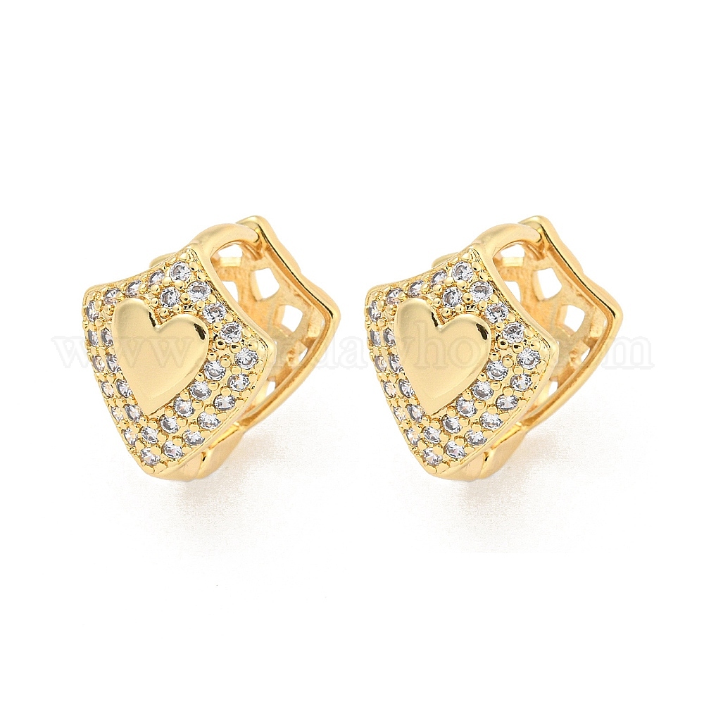 Серьги-кольца из латуни с паве и прозрачным цирконием в форме сердца