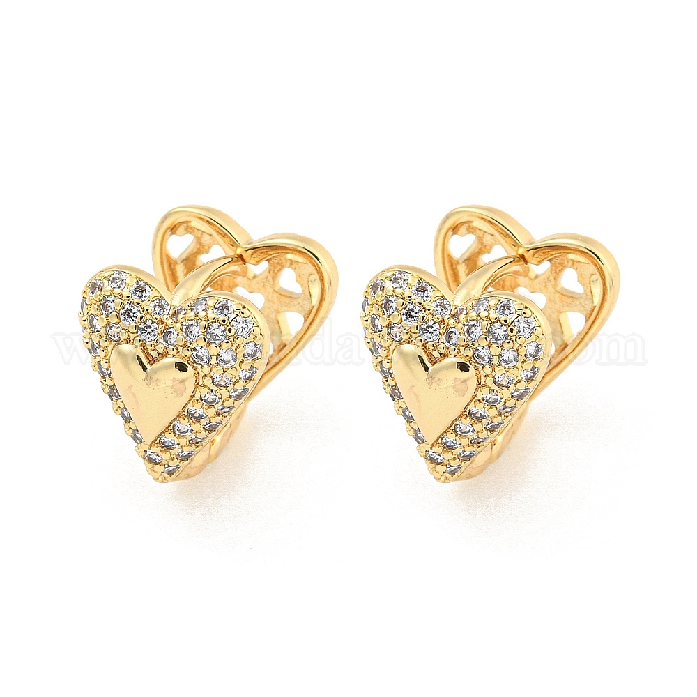 Серьги-кольца из латуни с паве и прозрачным цирконием в форме сердца