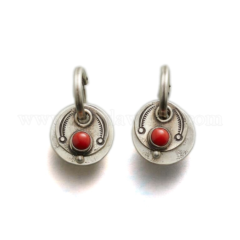 Синтетические бирюзовые серьги обруча, со сплавочной фурнитурой, плоско-круглые, красные, античное серебро