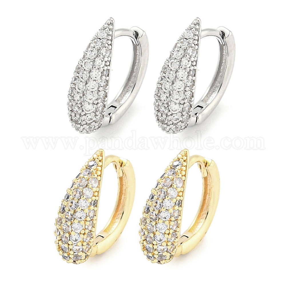• Платинированный Женские серьги-кольца из латуни с микропаве и прозрачными циркониями, слеза, Реальная платина, 12.5x13.5 мм