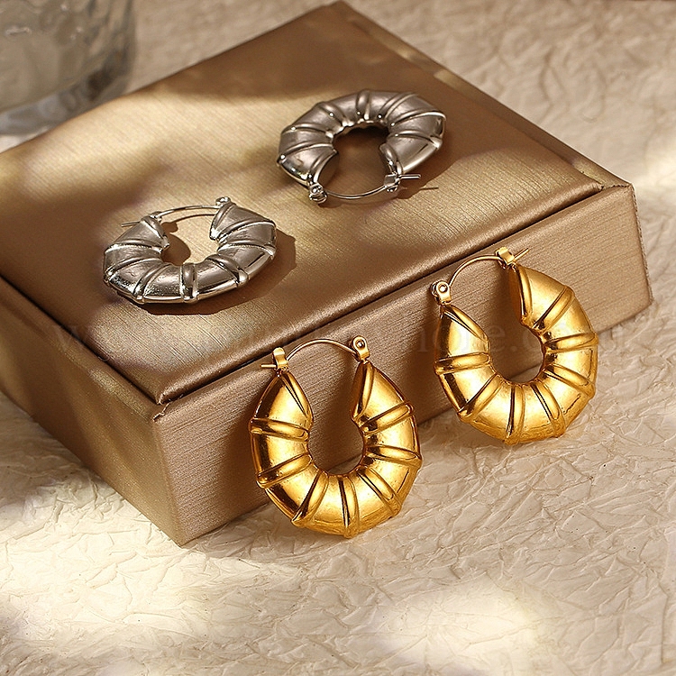Европейская и американская мода цельные бамбуковые серьги-кольца из нержавеющей стали, высококлассный смысл простые дамы