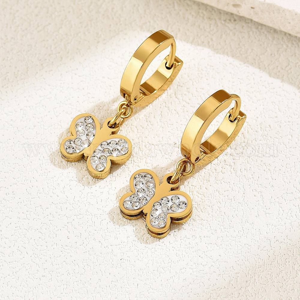 Элегантные 201 серьги-кольца из нержавеющей стали в форме бабочек, со стразами