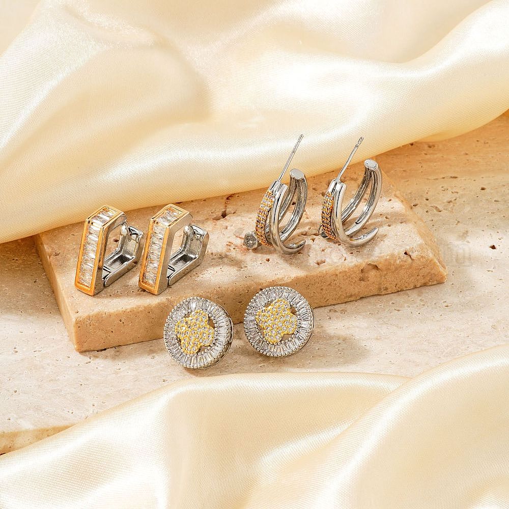 Серьги-кольца с геометрической инкрустацией медью и цирконом