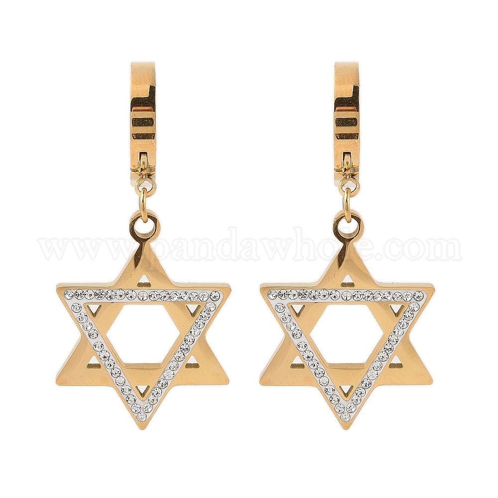 Вакуумное покрытие pvd 304 серьги-кольца из нержавеющей стали со стразами для женщин, гексаграмма