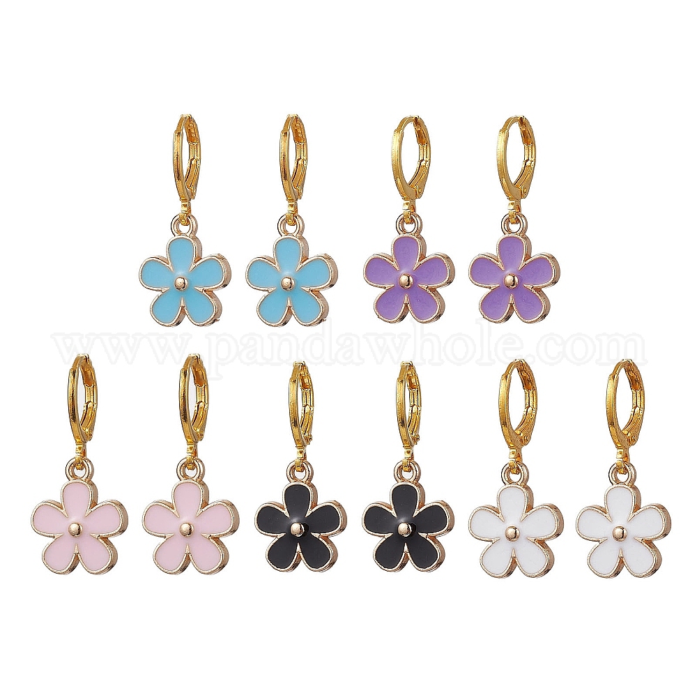 Серьги-кольца из сплава и эмали, цветок, золотые