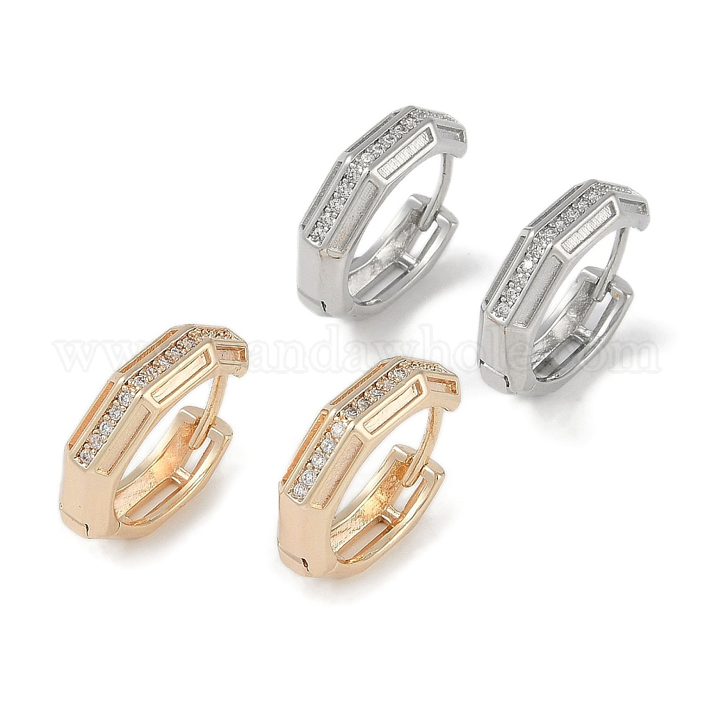Серьга-кольцо с прозрачным кубическим цирконием из латуни