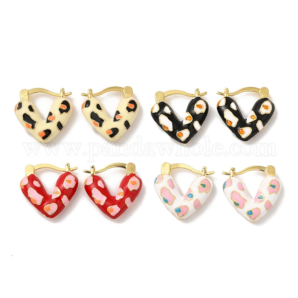 Серьги-кольца из латуни с эмалью и покрытием стойки, без кадмия и без свинца, долговечный, сердце, реальный 18 k позолоченный (02WZ9A)