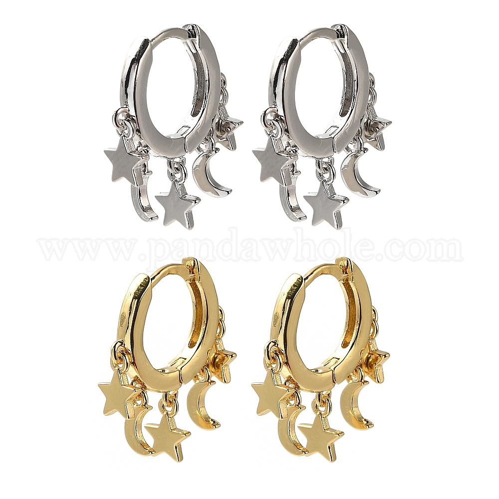 Латунные серьги обруча, без кадмия и без свинца, долговечный, звезда и луна