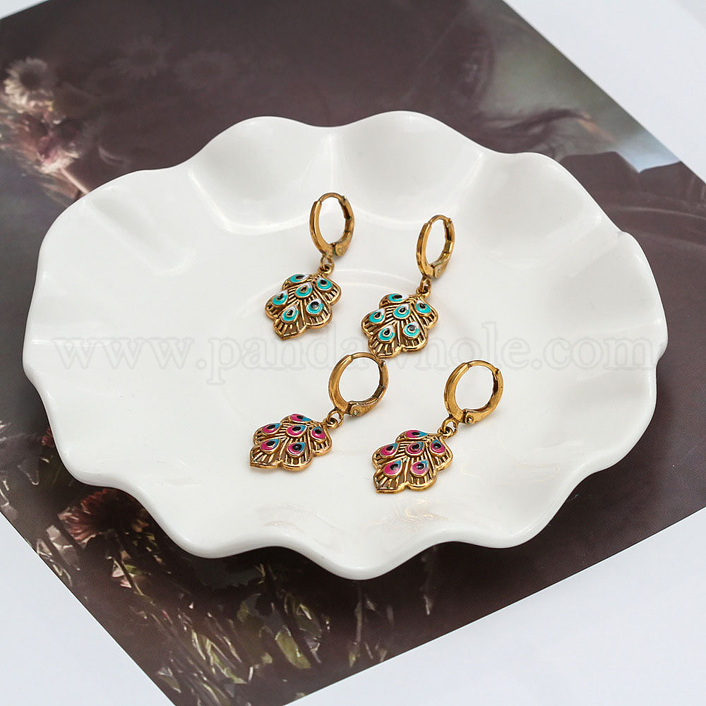 Серьги-кольца из эмали и сплава для женщин, перо, золотые