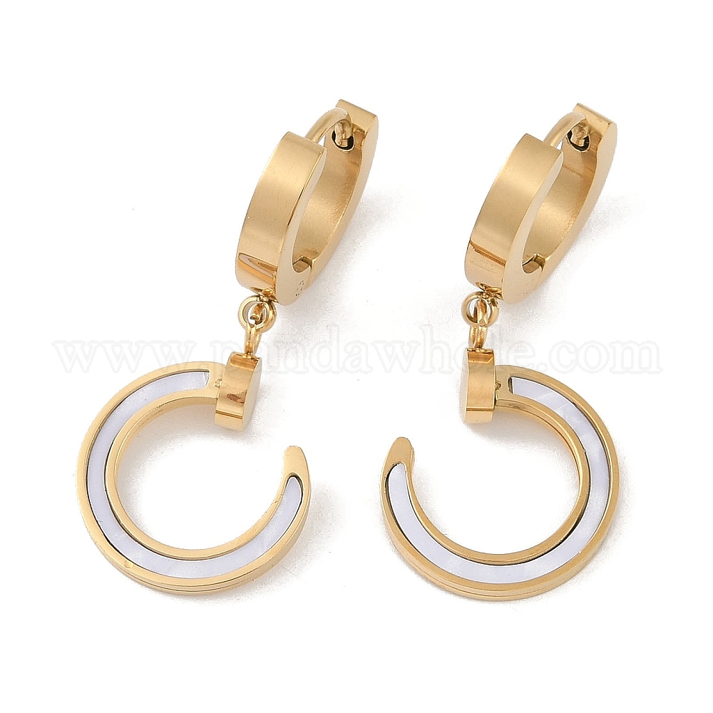 • Золотой Вакуумное покрытие pvd 201 серьги-кольца из нержавеющей стали в форме буквы С, с оболочкой и 304 штифтом из нержавеющей стали, золотые, 35x15 мм